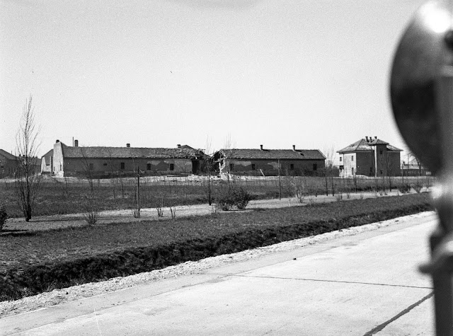 fortepan / a Ferihegyi repülőtérre vezető út az Üllői út felé nézve. Bal oldalon Kispest szélső házai, középen a Határ csárda két melléképülete, jobb oldalon a vámház. 1944.